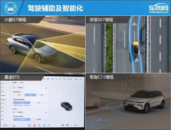 四款车型的驾驶辅助等级均达到L2级,驾驶辅助硬件方面,星途ET5和零跑C11增程均具备1个激光雷达,对路况把控更为精准。驾驶辅助功能上,小鹏G7增程功能种类多样,独享循迹倒车、远程召唤功能,值得肯定;零跑C11增程的功能数量则稍显不足。