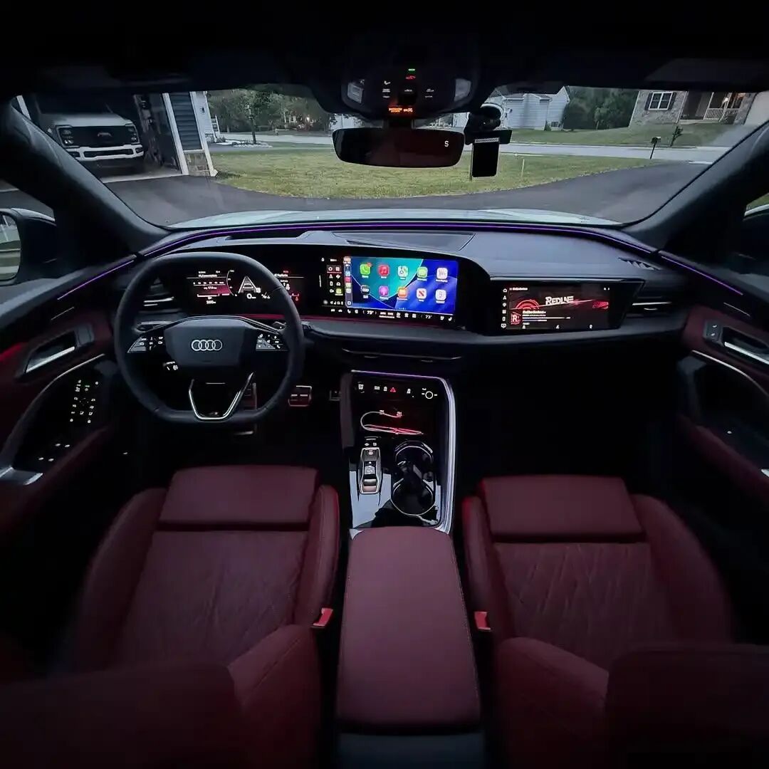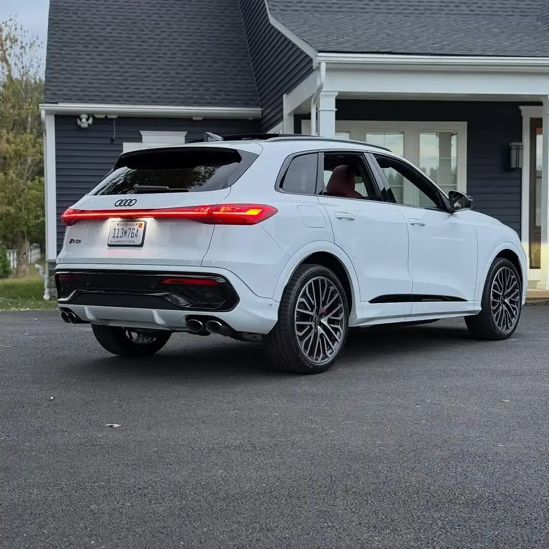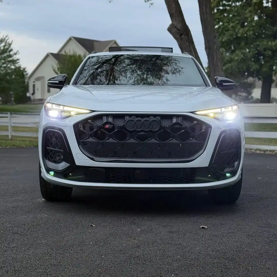 外观方面,2026 款奥迪 SQ5 延续了奥迪 RS 家族的运动设计语言,大尺寸蜂窝状进气格栅搭配犀利的矩阵式激光大灯,攻击性拉满,完全契合性能车用户的审美需求。侧面流畅的腰线搭配红色刹车卡钳与 20 英寸运动轮毂,运动气息拉满,尾部贯穿式 OLED 尾灯搭配双边四出排气,运动属性拉满,排气回火声浪辨识度十足,只是蜂窝格栅设计偏激进,部分消费者可能需要一定时间适应,审美接受度因人而异。