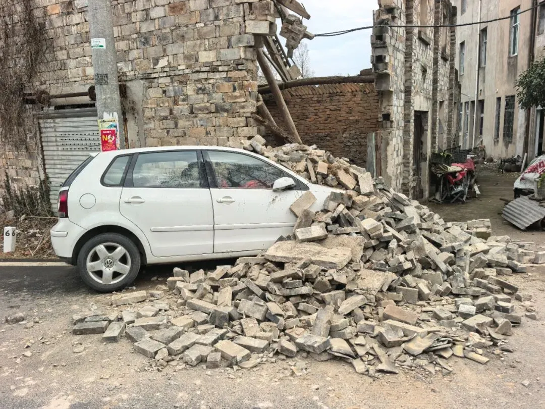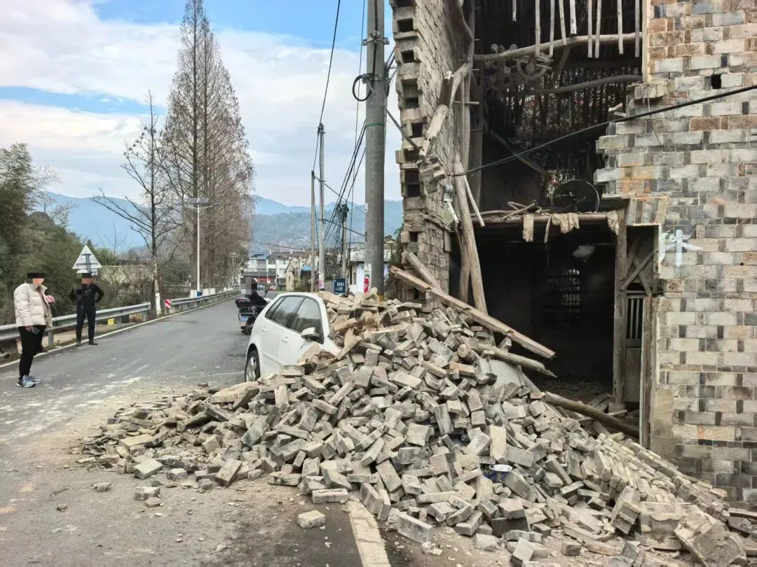 巨大的撞击力致使房屋墙体瞬间坍塌