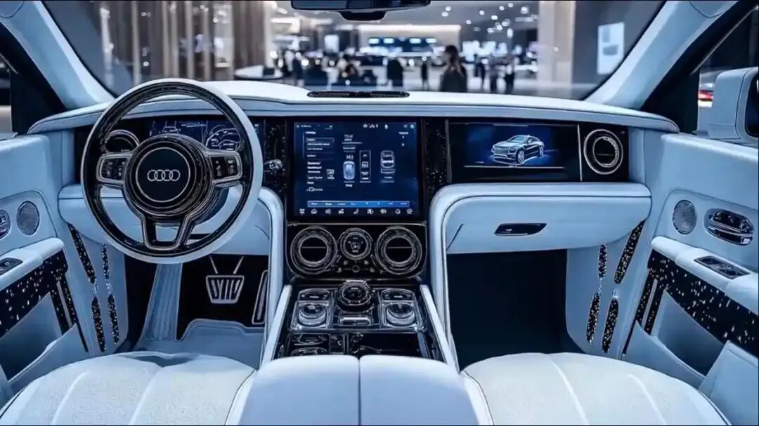 内饰方面,2026 款奥迪 A8 整体采用了环抱式座舱设计,车内大面积采用真皮材质包裹,搭配钢琴烤漆饰板与金属饰条点缀,豪华质感直接拉满。车内配备了 12.3 英寸全液晶仪表 + 中控上下双屏的虚拟座舱组合,车机系统操作流畅,支持多轮语音交互,标配 L2 级辅助驾驶、空气悬架、全车电吸门,后排座椅加热通风按摩等豪华配置一应俱全,唯一的短板是后排娱乐系统需要额外选装,对比同价位竞品,标配的娱乐配置稍显不足。