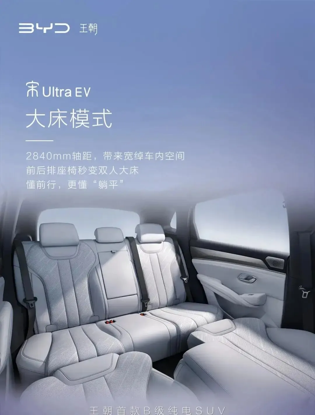 说实话,看到宋 Ultra EV 这内饰图,我第一反应是:这车是不是偷偷给我发了优惠券?方向盘是两辐的,干干净净;中控屏悬浮着,仪表盘左边空调出风口还能手动调角度——别说,这设计真像给“懒人”量身定做的。更绝的是,中央扶手那儿塞了双手机无线充电板(50W的功率,充电快到飞起),还能放杯子。轴距2840mm,比同级车长出一拳,前排座椅一躺,后排直接变双人床。