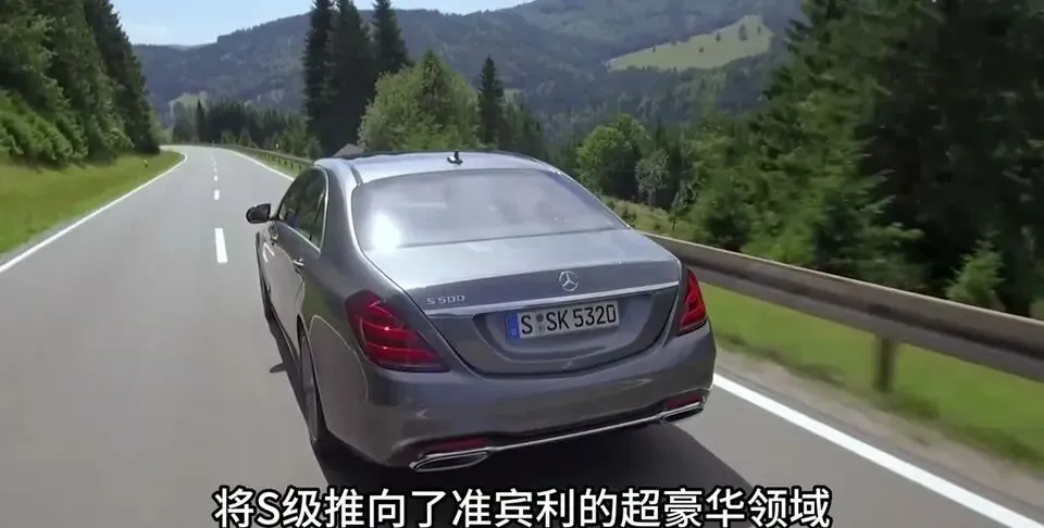 奔驰S级W222灰色车身,山路行驶