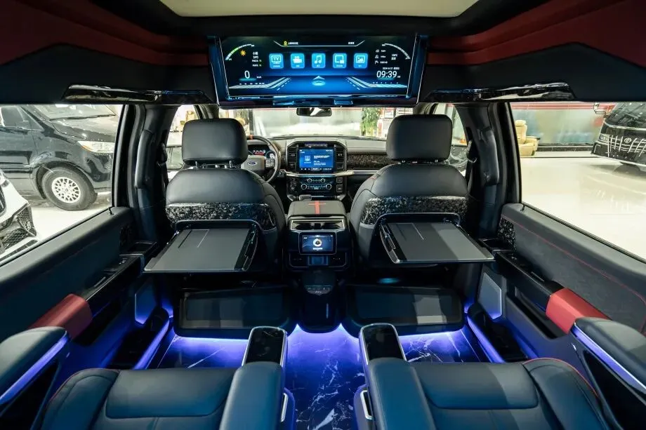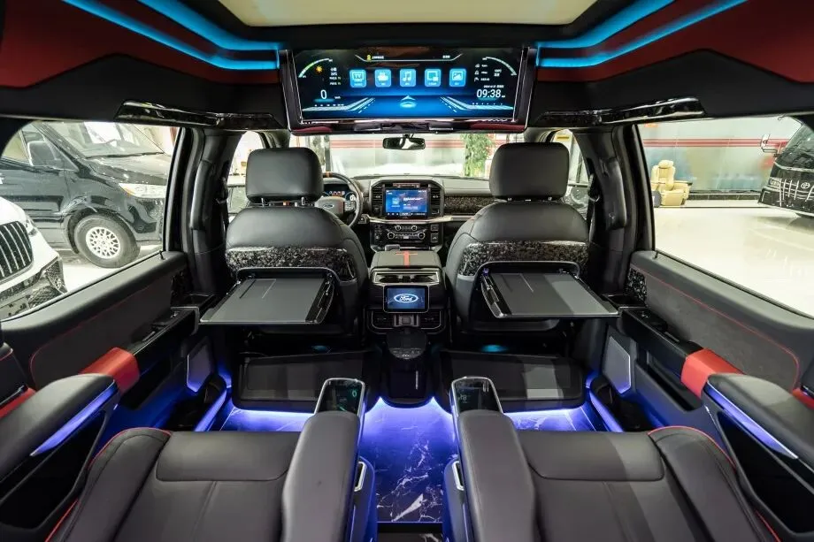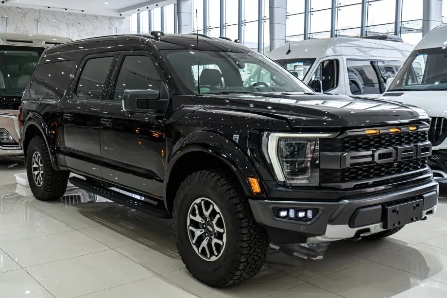 在硬派越野车型中,福特勇猛者一直以强悍性能与个性化设计著称,而 2025 款高顶猛禽版更是将 “硬核” 与 “豪华” 完美融合。从标志性的 Ford 字母前脸到专业越野外胎,从纯黑内饰的沉稳格调到吸顶电视、黑色岩板地面的精致配置,每一处细节都彰显着这款车的独特魅力。配合全系列直降 10 万的重磅优惠,让这款 “全能越野王” 成为高端玩家与商务精英的不二之选。