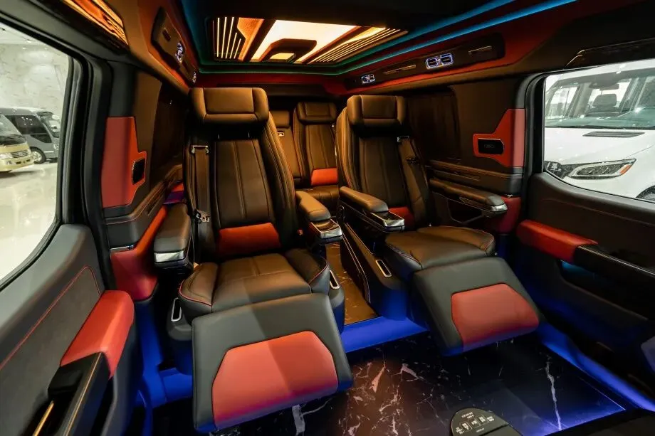 三色顶灯为车内氛围增添更多可能,支持白色、暖色、蓝色三种灯光模式切换。白色灯光明亮清晰,适合阅读或办公;暖色灯光温馨柔和,营造居家氛围;蓝色灯光科技感十足,搭配黑色内饰更显神秘格调。灯光调节通过车顶触控面板操作,响应灵敏,还可设置随车速自动调节亮度,细节处尽显人性化。