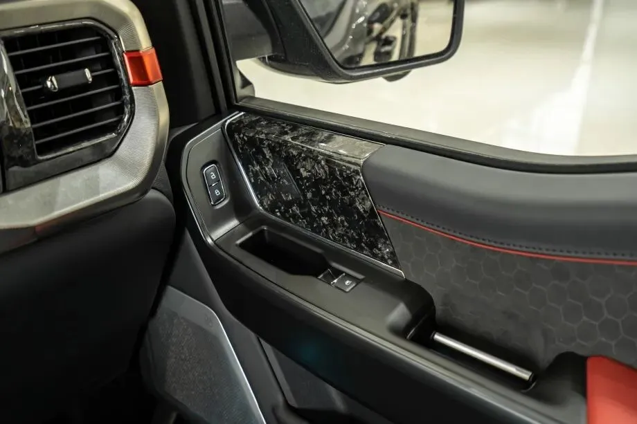 打开车门,福特勇猛者高顶猛禽版的黑色内饰瞬间营造出沉稳奢华的氛围。全车内饰以黑色为主色调,搭配金属饰条与碳纤维纹理点缀,既保留了越野车型的粗犷,又融入了商务座驾的精致。仪表台、门板等处采用软性搪塑材质包裹,触感细腻,接缝处采用双缝线工艺,针脚均匀平整,细节处彰显匠心品质。