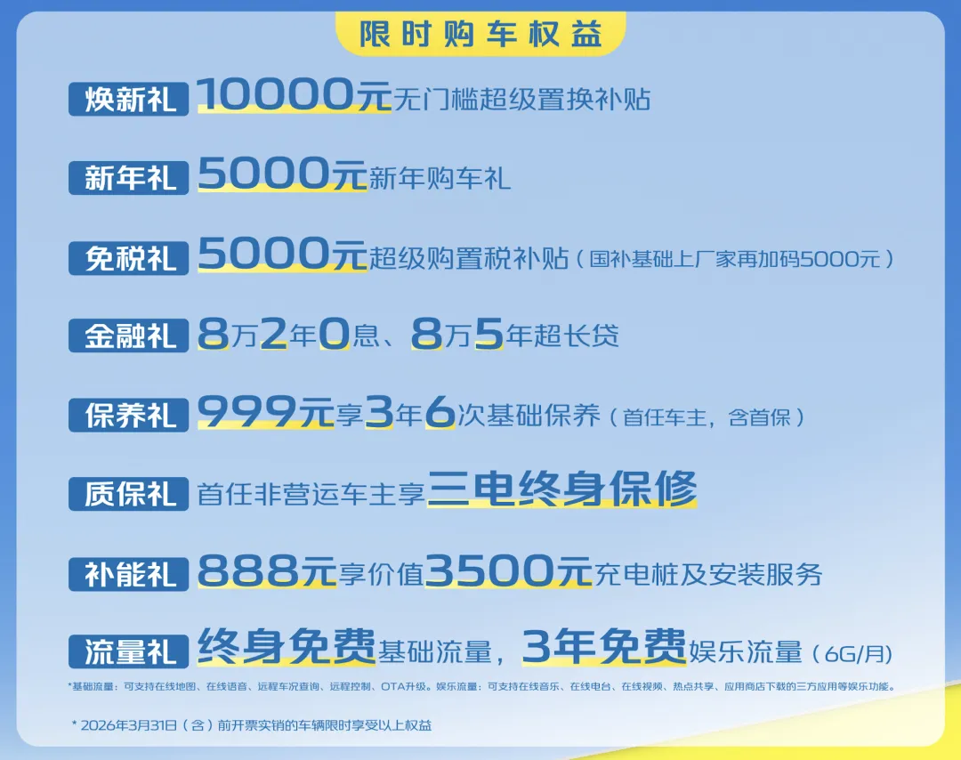 2月28日,长安新款UNI-Z PHEV正式上市,新车共推出3款车型,指导价11.89-13.59万元,新车限时权益价9.89-11.59万元。针对购买新款UNI-Z PHEV的车主,长安提供官方10000元无门槛置换补贴、5000元新年购车礼、5000元超级购置税补贴。相当于提供2万元优惠,此外消费者还可享受国家报废或置换补贴,进一步降低购车门槛。针对贷款购车的消费者,长安提供8万元2年0利息,或者8万元5年超长贷方案。另外还有999元享3年6次基础保养,三电终身保修等权益。此次新款UNI-Z PHEV在外观方面变化不大,但是配置升级显著,例如提供了前排座椅通风加热按摩、副驾电动腿托、泊车辅助、L2级辅助驾驶等功能。动力系统方面,新车配备1.5L发动机,发动机最大功率72千瓦,电机最大功率160千瓦,纯电续航130km,综合续航1250km,而WLTC工况亏电油耗仅5.09L/100km。前不久,我们试驾了长安新款UNI-Z PHEV,欢迎点击下方视频,了解详细的试驾体验。