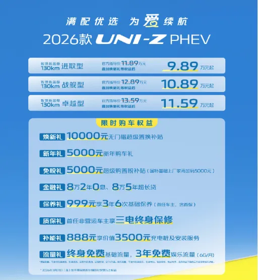 说到这款长安UNI-Z PHEV,未必熟悉,但是我们对燃油版都非常熟悉,其实这款系列也拥有新能源版本!该新车近期正式迎来上市,厂家指导价11.89-13.59万元,有着不错的价格权益,叠加后售价9.89-11.59万元。此次主要是针对年度改款,配置方面进行了强有力的升级。