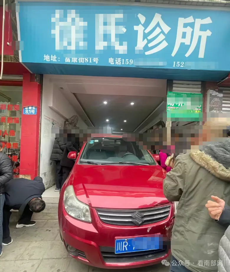 近日,南部县王家镇富康街 81 号发生一起惊险交通事故,一辆牌照为川R的红色私家车突然失控,径直冲入了一家诊所内,造成诊所内部设施严重受损,现场情况令人揪心。