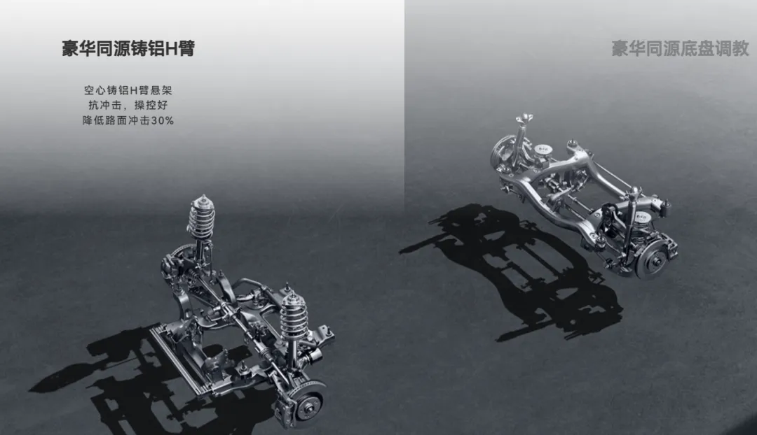 至于底盘,悬架部分很多是铸铝材质,特别是H摆臂部分,更加轻量化,带来更好的操控属性。