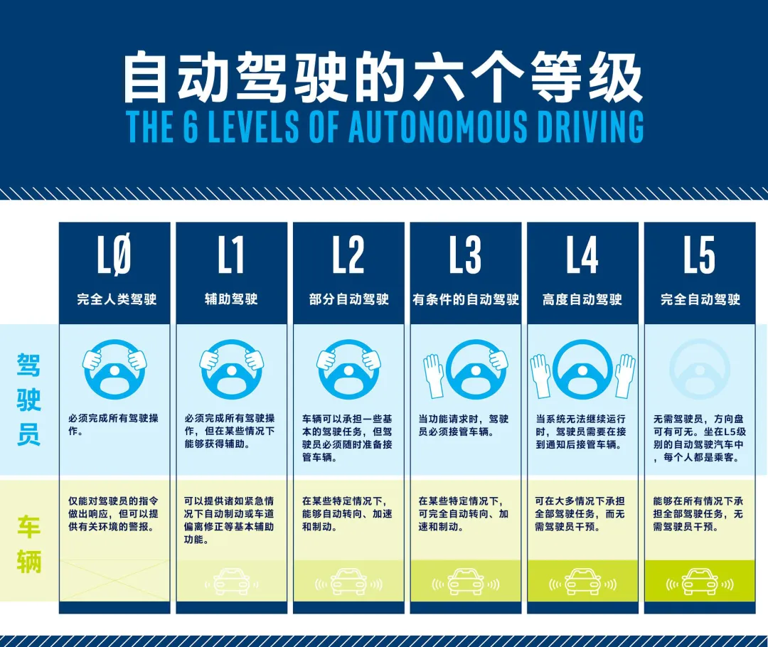 大家可能都听过自动驾驶其实是分级的,分级标准: SAE International 自动驾驶分级(L0–L5)