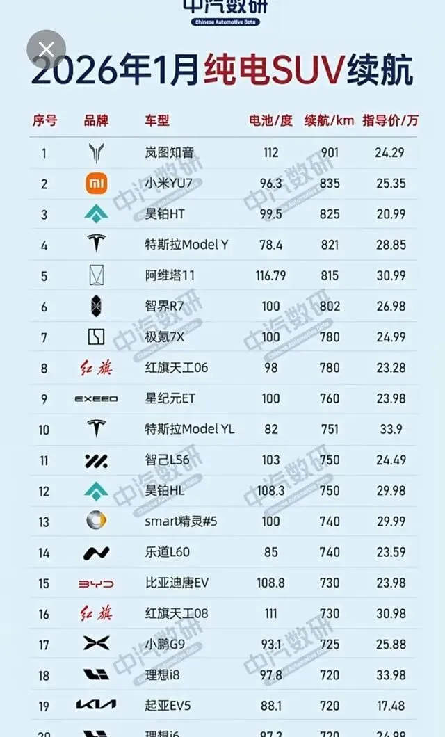 最近刷汽车圈的内容,发现不少朋友都在讨论华为系的纯电SUV,除了大家熟悉的鸿蒙智行,其实还有华为乾崑和引望合作的车型。说到这儿,必须提一下岚图——这个和引望、华为乾崑深度绑定的豪华品牌,最近推出的知音超长续航版,直接把纯电SUV的续航门槛拉到了900公里以上,而且价格还卡在20万级,这波操作确实有点东西。