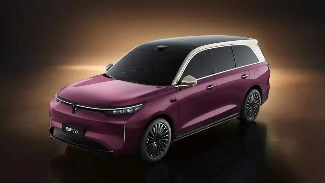 这辆叫V9X的SUV个头不小,车长超过五米二,轴距三米一,六座布局挺实用,车头装了激光雷达,外观设计不花哨,颜色有紫金双拼可选,动力用的是长城自家的1.8T发动机,电池分高低配,纯电续航最长能跑三百六十三公里,拖个房车没问题,载重两吨也扛得住。