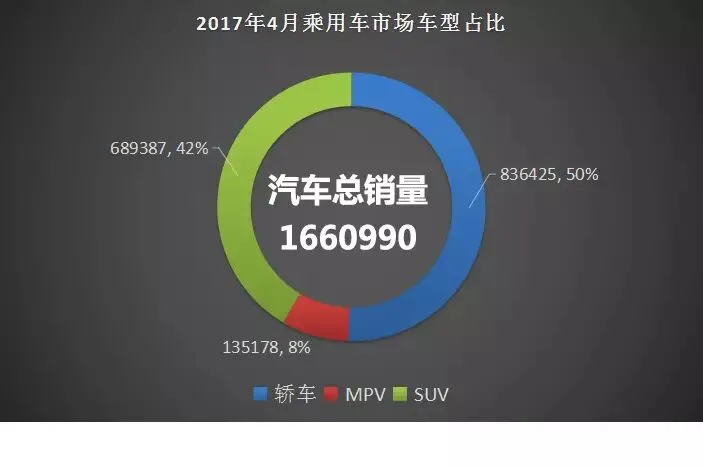从销量数据上你便可以得到一个非常准确的答案!虽然SUV的热度很高,但是在总销量方面轿车依旧是领先于SUV车型。据数据统计,17年4月份中国汽车市场乘用车销量达到166.1万辆,同比增长为0.8%,环比下降了12.9%。而1-4月累计销量为7092458辆,较2016同期的7109426辆跌了0.2%,由此可见国内的乘用车市场已经明显进入了微增长的态势,也意味着国内乘用车企业即将进入下一轮的洗牌大战当中!产品力跟不上就意味着被消费者淘汰!