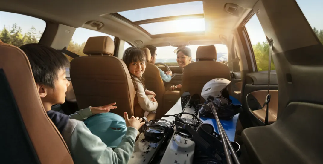 如果想去滑雪也可以把第二、第三排座椅各放倒一张,平坦宽敞的储物空间可以轻松容纳滑雪板、雪杖等工具。此时车内依然可以乘坐4人,这也是轿车不具备的优势。