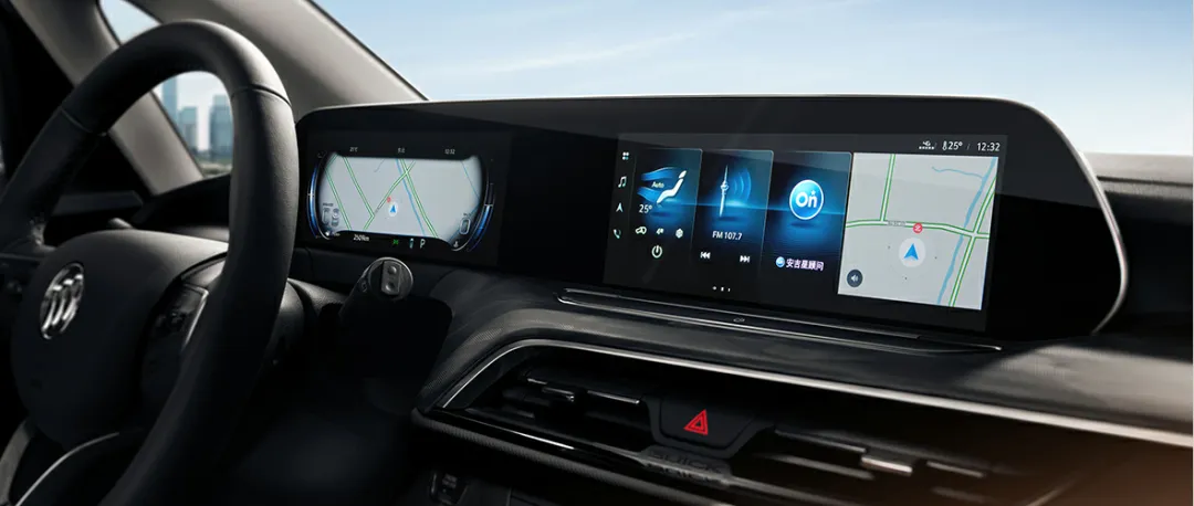 别克GL6的智能化配置方面,车内采用了10.25英寸中控屏幕+10.25英寸液晶仪表的双屏设计,两块屏幕可以实现互联,将导航信息等重要行车信息投屏到液晶仪表,便于驾驶者读取。