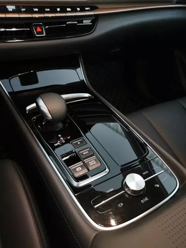 次日早晨,我再上车,才发现原来它的仪表台装饰件是香槟金色的,中控台的大面积钢琴黑面板,有很漂亮的质感。