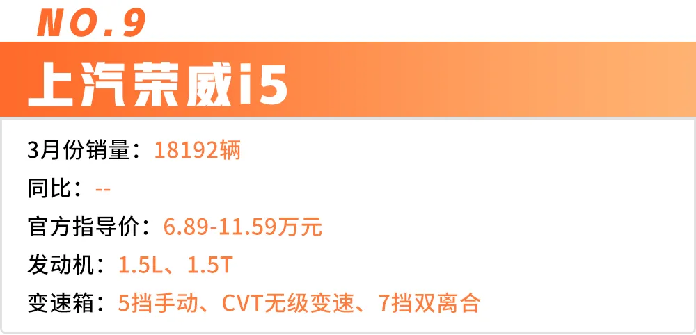 编辑点评:整个榜单里最抢眼的不过于上汽荣威i5,作为去年10月上市的新车,销量就一直保持在1万出头,甚至今年1月份销量接近2万,势头十分强劲,这还得归功于其较低的售价和国产车丰富的配置选择,使其具有优秀的性价比,吸引不少年轻消费者选购。
