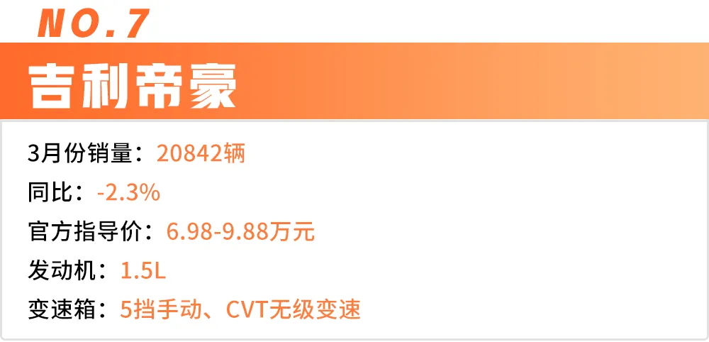 编辑点评:吉利帝豪代表国产品牌第一销量的轿车,长期处于销量前十的行列,这1.5L四缸发动机虽然动力不算充沛,但实测油耗仅6.1L/100km,表现十分优秀,相信未来该车仍然能在国产轿车中保持霸主地位。