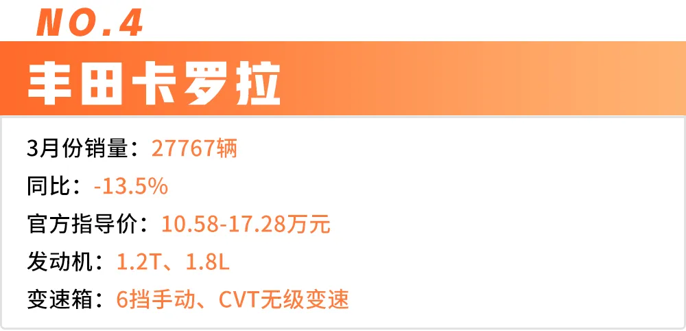 编辑点评:卡罗拉的产品竞争力依然强大,面对兄弟车型雷凌的拉流,仍能登上第4名的位置,而雷凌销量只达到第12名。而新款卡罗拉即将上市,另外加上更低油耗双擎版本的补充,卡罗拉必将成为紧凑型轿车的有力竞争者。
