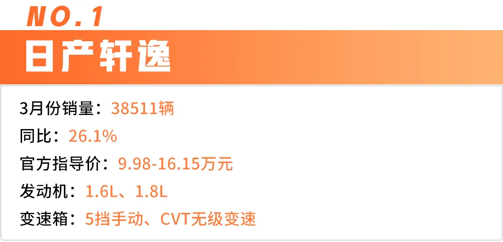 编辑点评:日产轩逸同比去年增长26.1%,超越卡罗拉、朗逸等一跃成为国内3月份销量最高的轿车,同级别中良好舒适性和燃油经济性并存,使其深受消费者的喜爱。另外,2020款轩逸已在上海车展亮相,更时尚年轻的设计和加长的车身使其获得“小天籁”的美誉,新车上市后轩逸的销量值得期待。