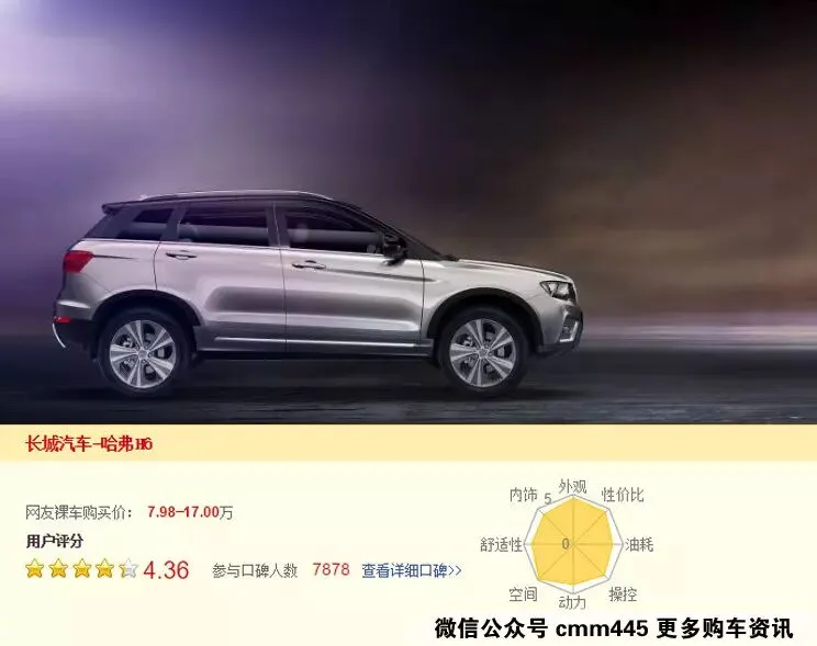 从某知名网站的用户口碑排行榜上显示,车主们对于哈弗H6的空间、外观、性价比、内饰、舒适性等方面的评价很高。这正是我国消费者现时最在意的几个方面,哈弗H6在这些方面表现强势,用户的口碑自然也不错,所以也使其保持着居高不下的销量!