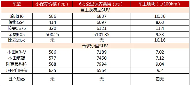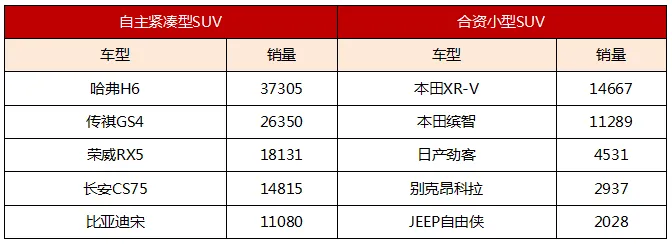 自主紧凑型SUV和合资小型SUV
