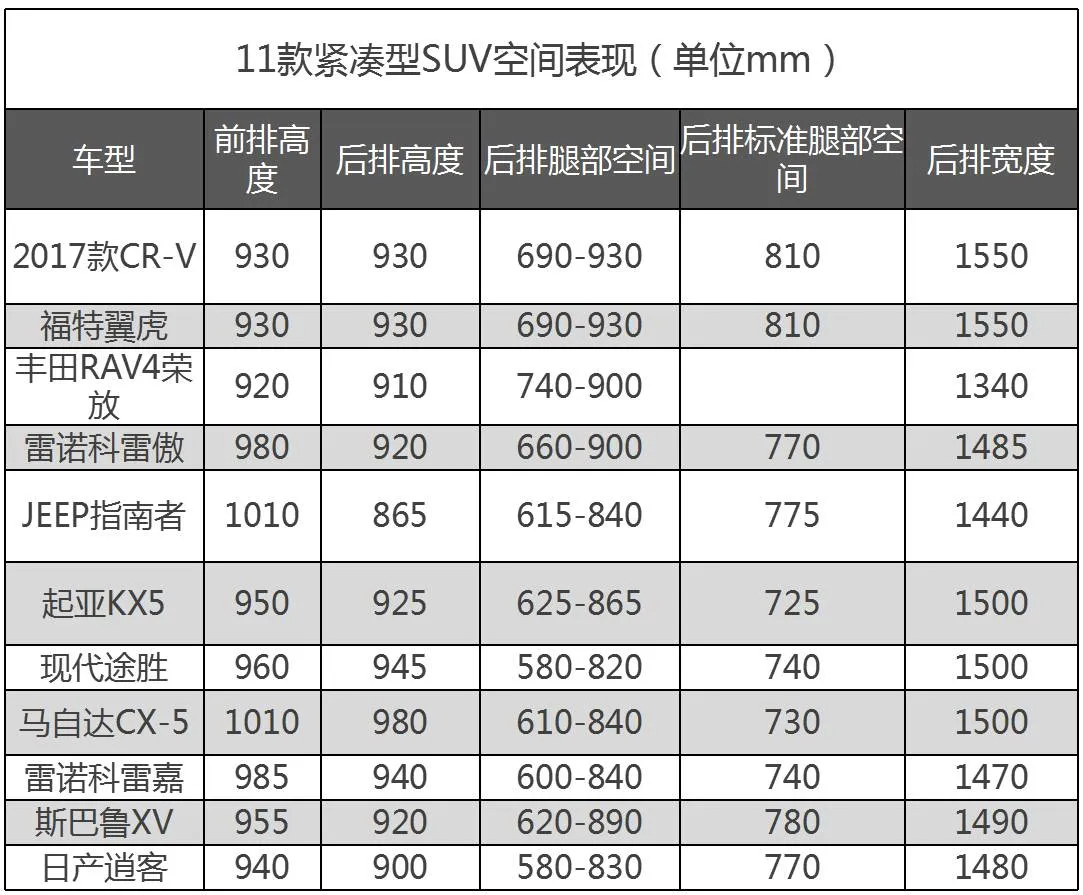 这些车看上去差不多大,也都宣传自己的后排空间宽敞无比,这可把我们挑花眼了,其实对于消费者来说,买紧凑型SUV主要就是家用(别告诉我你买CR-V是为了飙车),所以买家最想知道的无非就是几个问题: