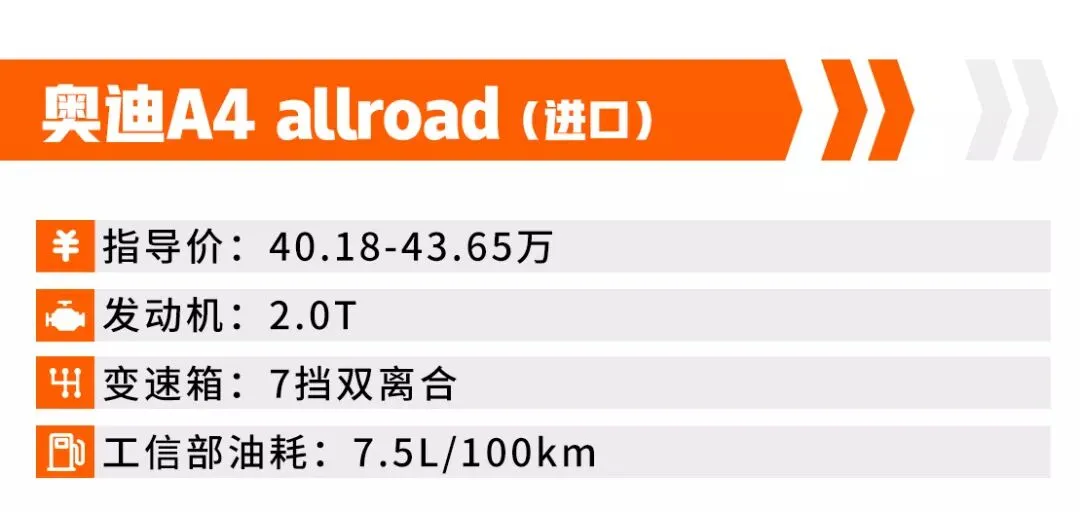 编辑点评:一直以来A4旅行版在国内都有着相当高的热度,有些消费者并不需要A6旅行版那么大尺寸的车,而A4旅行版的尺寸则刚刚好。目前引进销售的车型均为allroad版本,跨界风的外观套件以及升高23mm的底盘都使得它看上去个性十足。同时越野模式以及陡坡缓降功能也是A4 Avant和三厢版车型所不具备的,更符合allroad跨界车的身份。