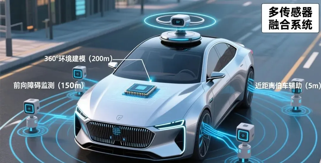 - 多传感器融合布局:高阶无人驾驶方案(如Waymo),车身四周安装4-6颗激光雷达,结合毫米波雷达、摄像头,实现全场景无死角、冗余感知,确保极端场景下的安全性。