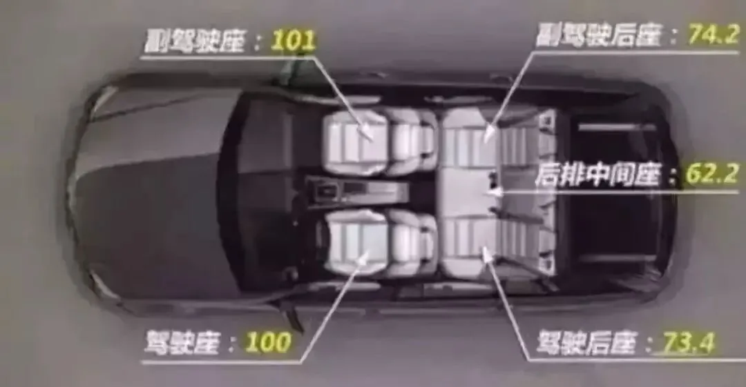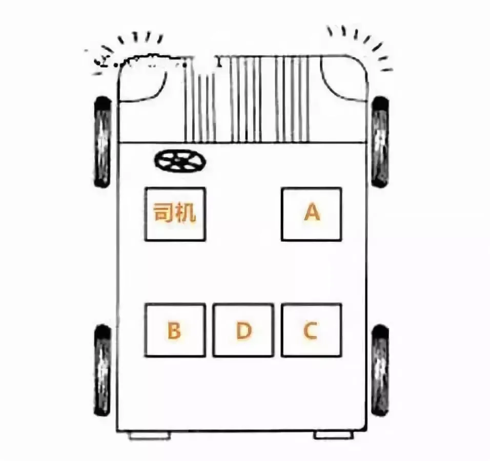 危险系数从高到低依次为:副驾驶座>驾驶座>副驾驶后座>驾驶后座>后排中间座