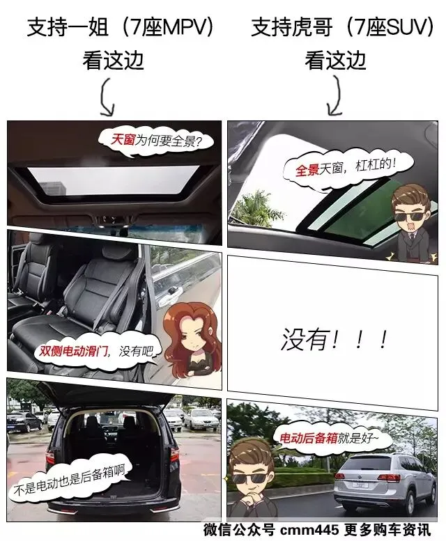 虎哥:咳咳,你先别说话!MPV不是出了名的实用吗?但就以你的举例的奥德赛来说,储物的地方并不算多且储物空间小。虎哥认为,只要SUV用心,细节方面足以打败MPV。就像途昂,前排的储物格又大又方便,放手机、钱包、水瓶……都很顺手。要点999+个赞!
