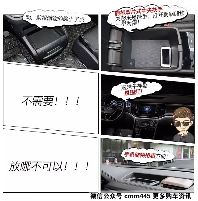一姐:首先,小不等于没有。储物格该有的有,看你怎么顺手而已。其次,氛围灯这些形同虚设的东西跟你的泡妞技术一样。最后,这一部分可以结束了吗?跟你说话很累!