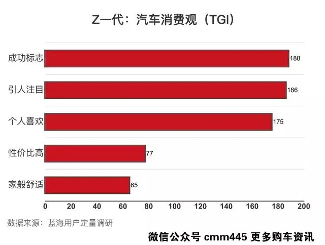 而对于这些新兴人类来说,他们的汽车消费观与70、80后人群来说有着极大的不同,面子、好看以及个性是最大购买因素;而性价比以及舒适性等所占比要低非常多!