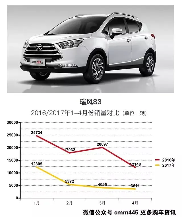 就像红极一时的瑞风S3,想当年它率先推出时竞品并不多,也就长安CS35算得上,初期近2万的销量着实让江淮松了一大口气。但随后越来越多的小型SUV加入不断蚕食它原有的市场,如今已经跌落到3000多的水平。