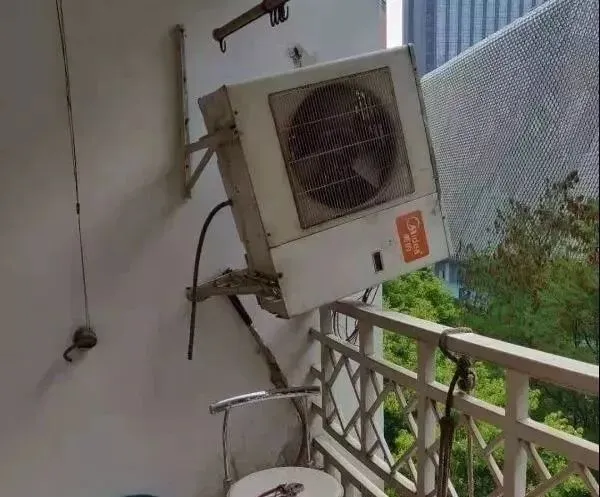 空调外机位于六楼一个阳台左侧,一边悬空,需要高空作业。按操作规程,鲁学文将拇指粗的安全绳一端系在阳台的栏杆上,一端绑在自己的腰间,然后爬上栏杆,右脚踩着栏杆,左脚踩在空调外机的支架上,准备拆卸。