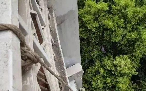 突然,他踩的那个支架脱落了,上面的空调外机一歪,重重地顶在了他的身上,把他撞出阳台。摔出阳台的瞬间,鲁学文感觉腰间的安全绳猛地扯了一下,断了,还没等他反应过来,就“嘭”一声重重砸在楼下的一辆汽车上。
