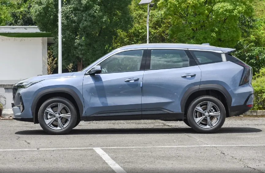 第四代吉利博越L的车侧变化不大,当然如果从侧面来看车头和车尾部分,还是会有明显的差异。另外从尺寸数据上来看,吉利博越L的车长为4730mm,轴距则是2785mm。此外,吉利博越L的车身线条非常丰富,而且车顶还有明显的溜背式设计,再加上车顶末端突出的扰流板,所以也能营造出几分轿跑SUV的既视感。