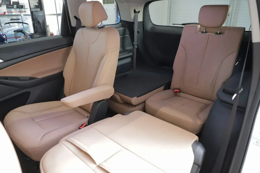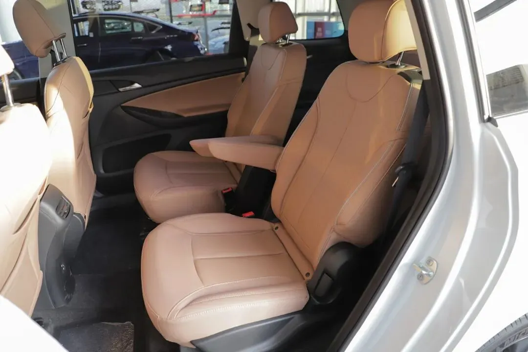 GL6的座椅相比之下也不落下风,这是因为得到了结构性的优化,使得前、后排座椅的坐垫长度得以保证,对大腿位置的承托比较到位。整体坐感虽然没有凌派那样柔软,但舒适度也很高,属于软硬适中的类型,并且全车的六张座椅全部采用打孔皮+缝线的工艺,具备高级感,同时第三排座椅坐垫角度也比较适中,长时间乘坐也能够保证舒适度,这些都很好的体现了GL6对于驾乘品质层面的追求。