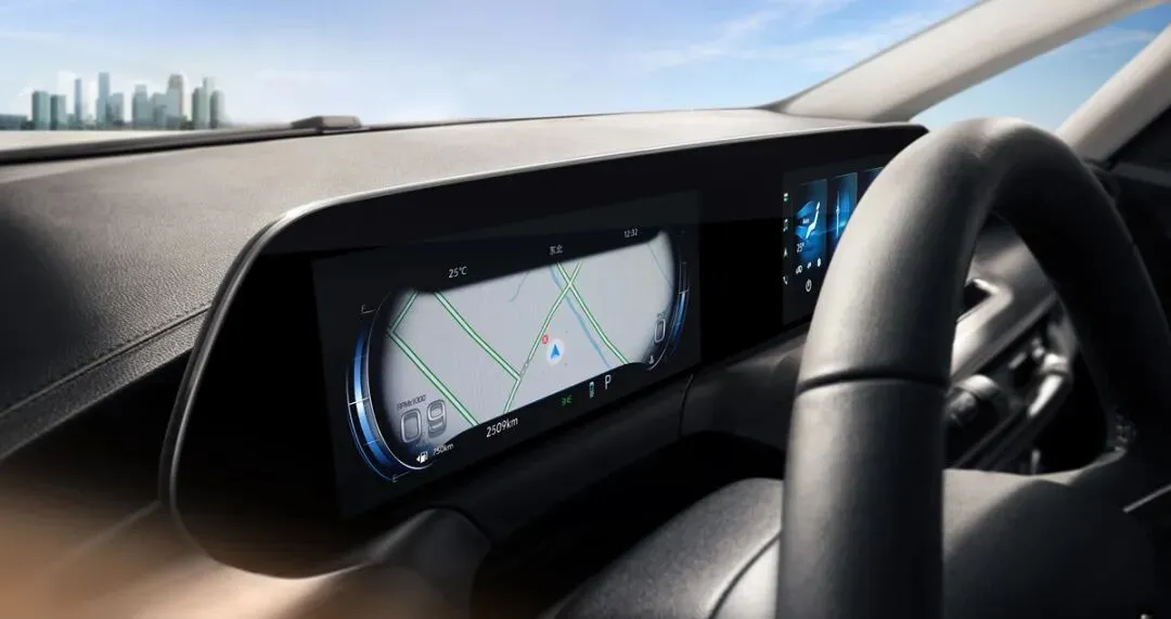 GL6则采用10.25英寸双联屏设计,对于内饰科技感的提升是非常明显的,两块屏幕的显示效果都比较细腻,功能也十分丰富,还支持联动,仪表可全屏显示地图,配合车机自带的高德导航,使用很方便。