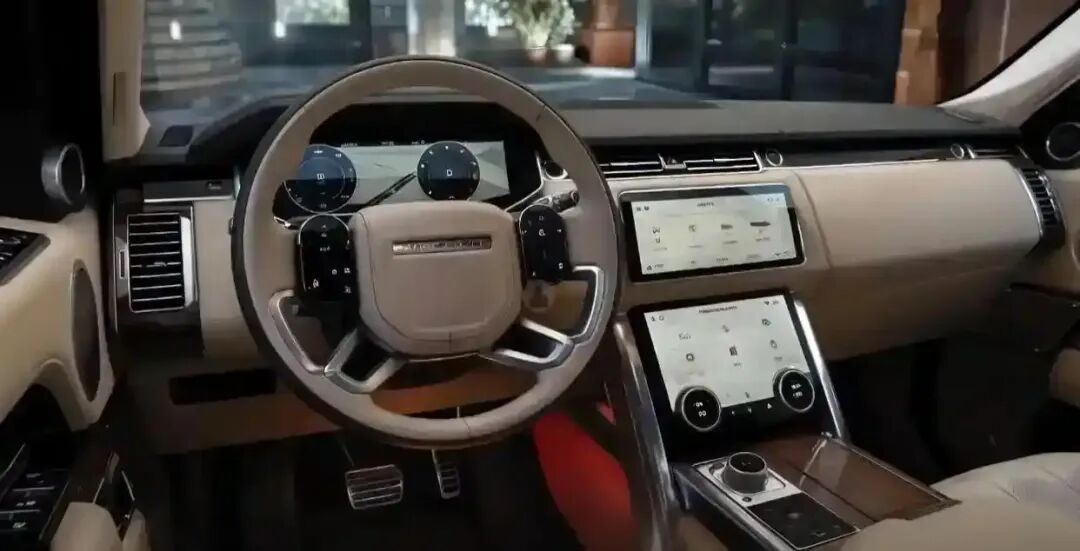 内饰方面,车内延续了路虎揽胜家族的英式豪华风格,大面积半苯胺真皮材质包裹,搭配实木饰板与金属饰条,档次感直接拉满。车内配备了 15.4 英寸的 OLED 中控屏,车机系统的流畅度表现出色,菜单逻辑清晰,常用的空调、驾驶模式功能都在首屏常驻,不用层层翻找。