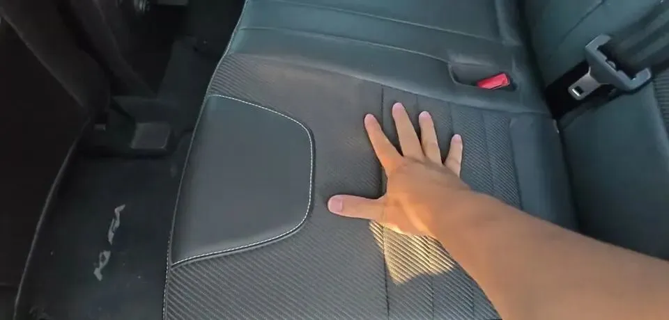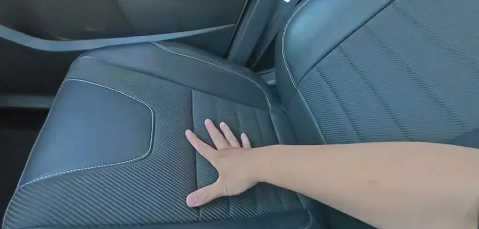 来到后排啊,紧凑的SUV,福特也不是很会掏空间,谈不上多少宽绰。要说的重点就是座椅,这个大面积的织物,坐上去真的很舒服,座椅的厚度在这里了,它真的堪比日产大沙发,甚至比大沙发还更软更舒服。