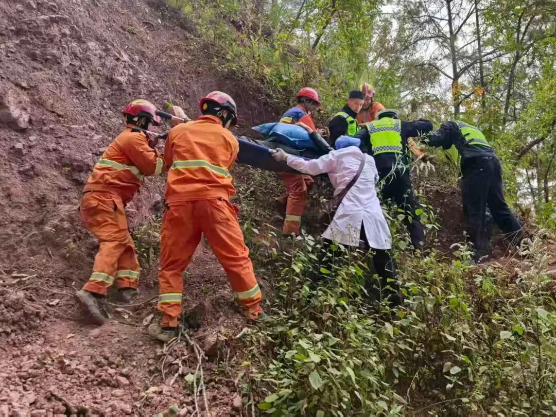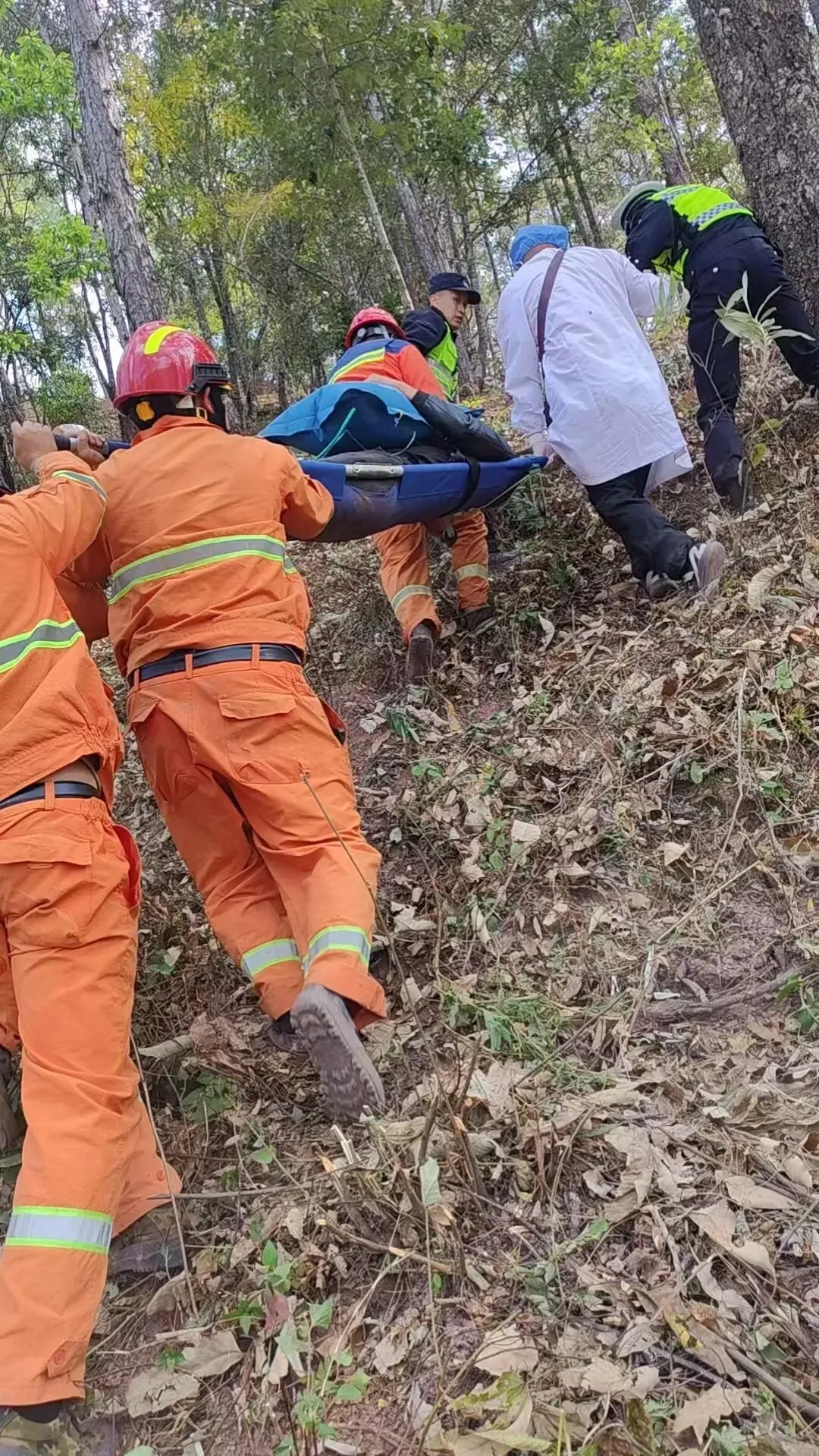 双柏一轿车失控坠入深沟,救援人员操砍刀锄头开凿救援通道…