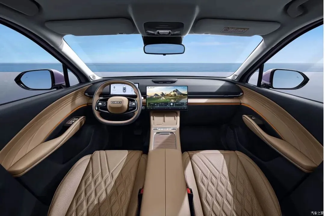 内饰方面,新车采用琥珀棕内饰色,环抱式座舱设计,大面积软包材质,中央配备大尺寸的悬浮式中控屏,并拥有无线充电面板和实体按键,256色音律氛围灯将光影节奏与音乐律动融合。