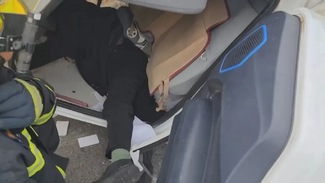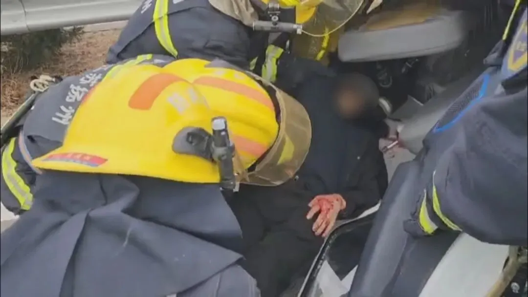 市民记者赶到时,消防员正使用破拆工具,对“老头乐”变形的车门进行扩张拆除。几分钟后,车门破拆成功,救援人员从另一侧打开救援通道将被困人员抬出来。医护人员随即将伤者送往附近医院进行救治。
