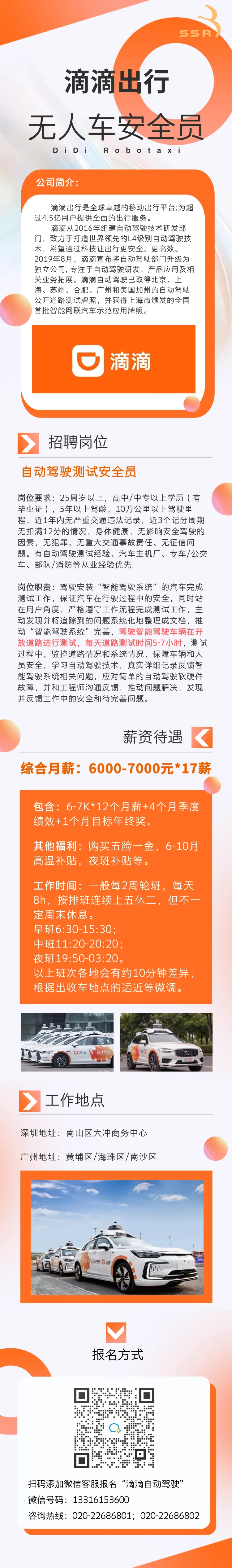 一年17薪 丨 互联网大厂招聘自动驾驶安全员,五险一金+综合年薪10万+,上五休二每天8小时!