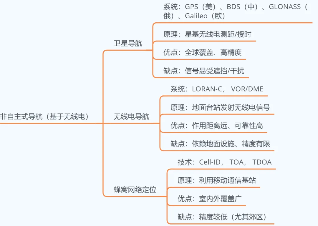 图1 自主导航技术基于外部的人为可控参考源的是非自主导航,底层的技术都是无线电检测或者无线电报文解析等。