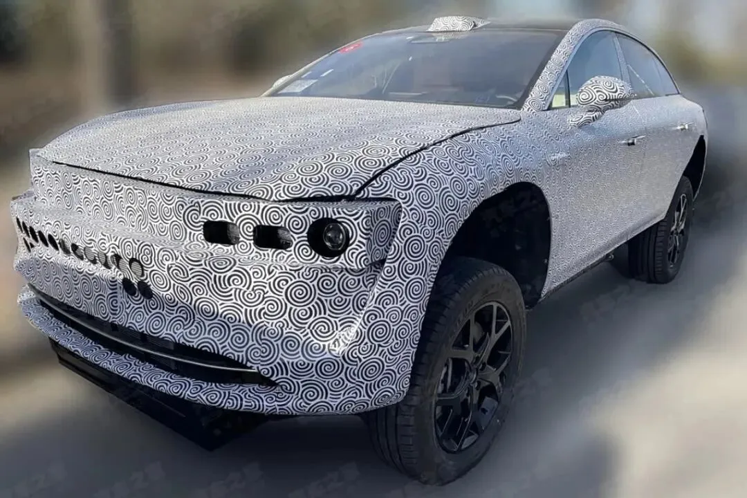测试车离地间隙显著高于现有旗舰轿车,通过性大幅提升,搭配255/60 R20规格全地形轮胎,无论是城市铺装路面还是非铺装复杂路况,都能从容应对。车头配备大尺寸散热格栅,兼顾视觉气势与散热效率,车身侧面可见充电接口与燃油加注口,明确采用增程或插电混动双能源动力方案,兼顾长途续航与低碳出行需求,完美贴合当前高端SUV市场的主流发展趋势。