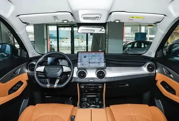 进入车内,新车采用全液晶仪表盘与三辐式多功能方向盘,中控区域配备13英寸悬浮式触控屏。阶梯式设计的中控台以银色饰板点缀,两侧及中央圆形空调出风口增添了内饰的个性元素。