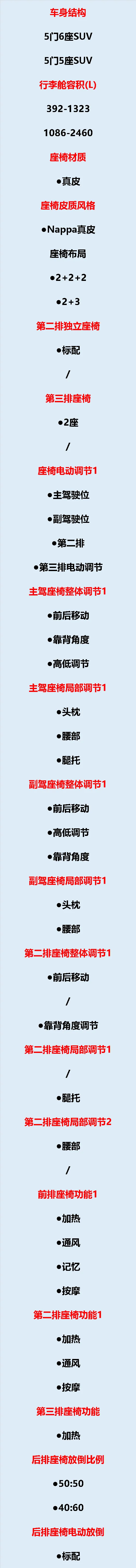 最后一排电动放倒,第二排按摩通风,