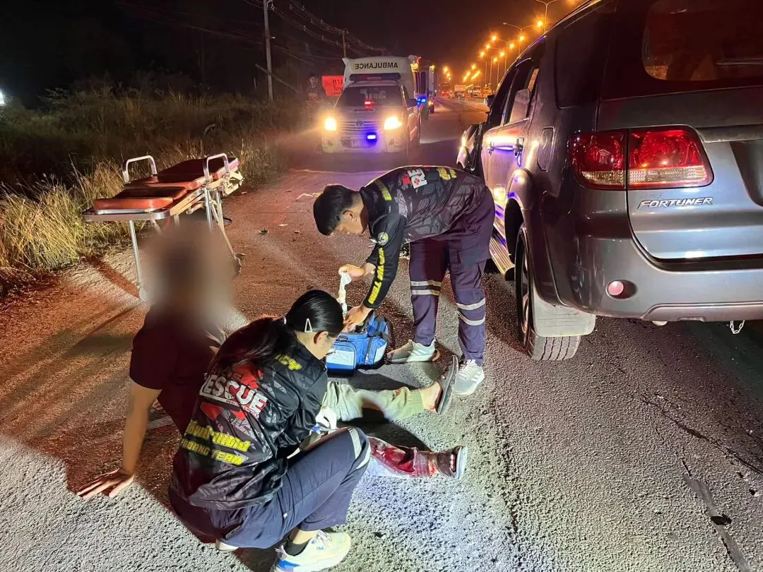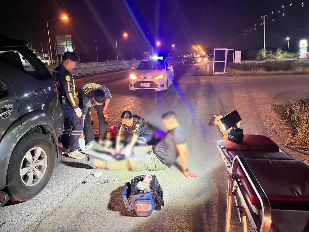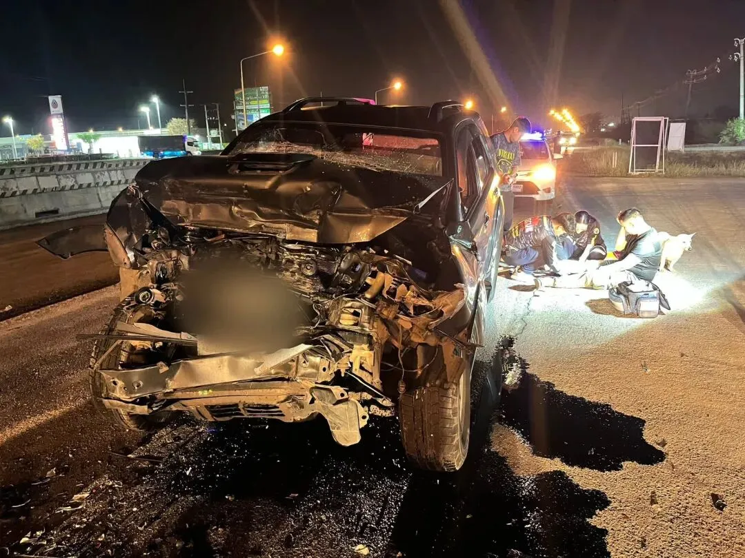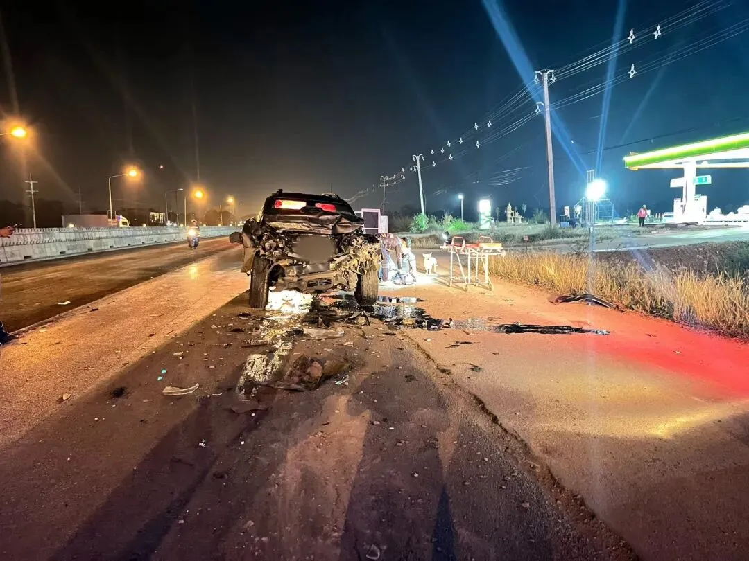 2026年2月28日凌晨5点20分,在清迈府山甘烹县班诺伊镇邦乍加油站前,一辆丰田SUV追尾撞上一辆十轮重型卡车。